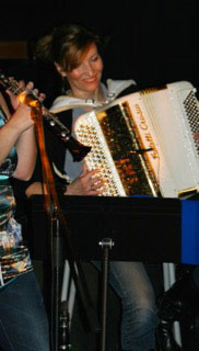 Elle est également musicienne active, puisqu'elle se produit en temps qu'accordéoniste/choriste au sein